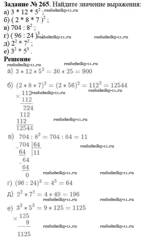 Готовая домашняя работа с ответами по Математике за 5 класс Дорофеев, Шарыгин, Суворова, Бунимович, Кузнецова, Минаева, Рослова Учебник Просвещение 2015 ФГОС - 3.4. Степень числа 265