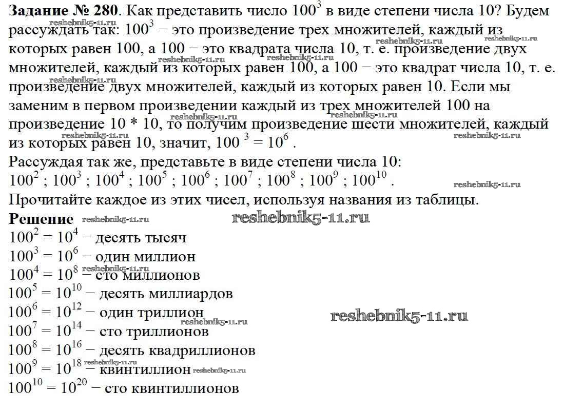 Готовая домашняя работа с ответами по Математике за 5 класс Дорофеев, Шарыгин, Суворова, Бунимович, Кузнецова, Минаева, Рослова Учебник Просвещение 2015 ФГОС - 3.4. Степень числа 280