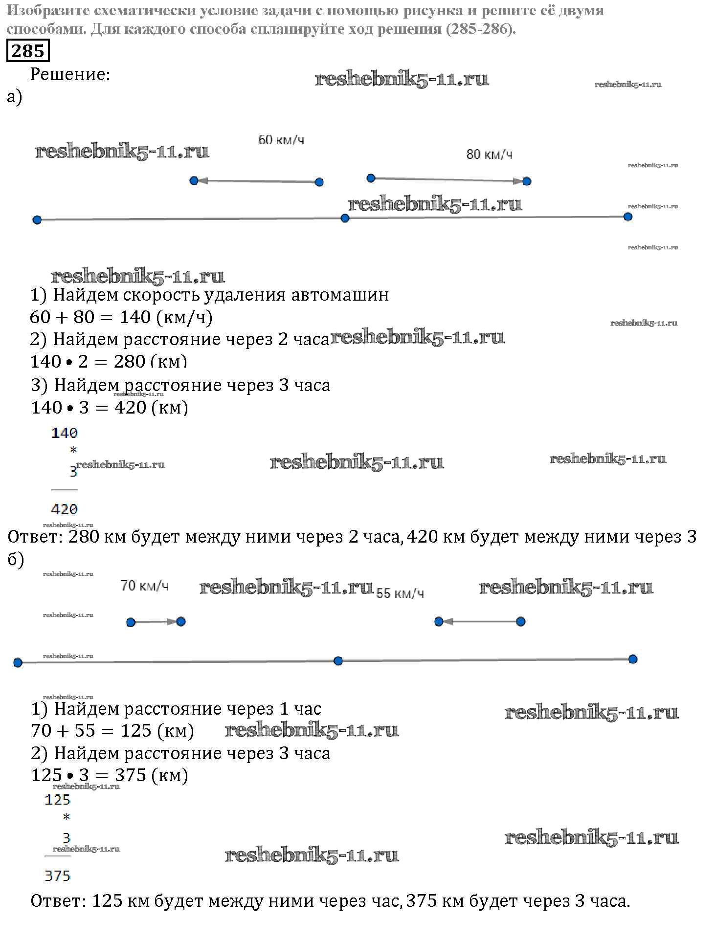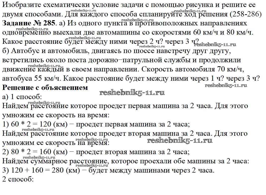 Готовая домашняя работа с ответами по Математике за 5 класс Дорофеев, Шарыгин, Суворова, Бунимович, Кузнецова, Минаева, Рослова Учебник Просвещение 2015 ФГОС - 3.5. Задачи на движение 285
