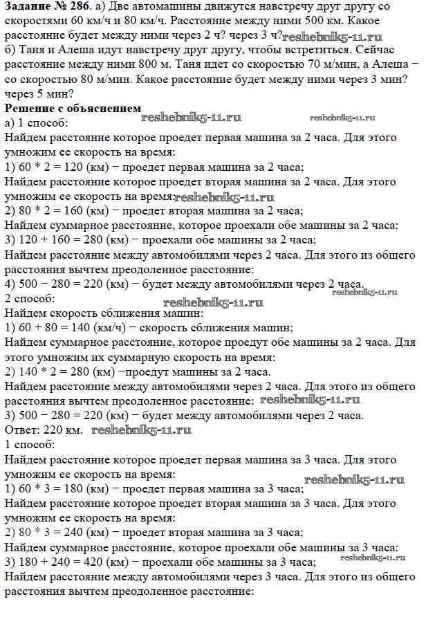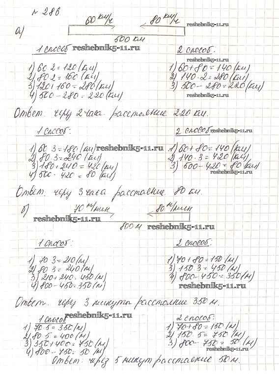 Готовая домашняя работа с ответами по Математике за 5 класс Дорофеев, Шарыгин, Суворова, Бунимович, Кузнецова, Минаева, Рослова Учебник Просвещение 2015 ФГОС - 3.5. Задачи на движение 286