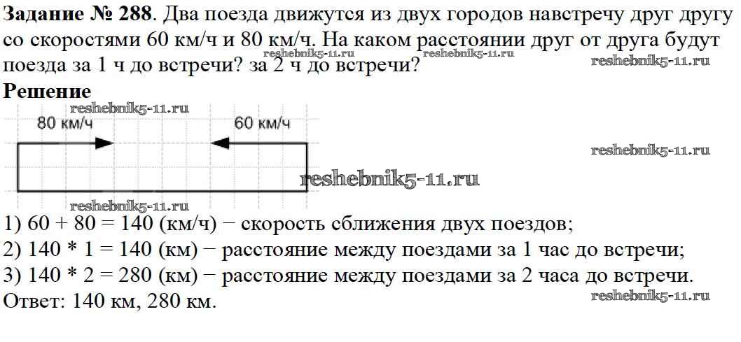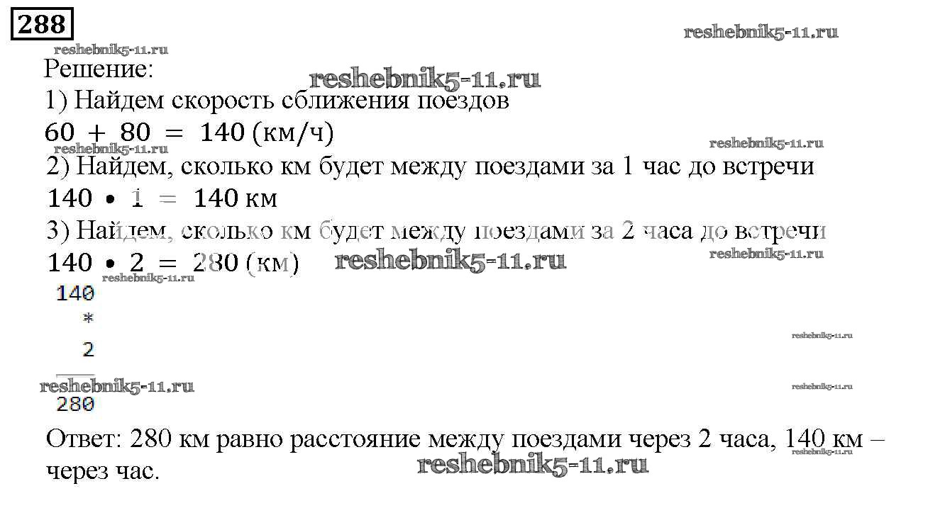 Готовая домашняя работа с ответами по Математике за 5 класс Дорофеев, Шарыгин, Суворова, Бунимович, Кузнецова, Минаева, Рослова Учебник Просвещение 2015 ФГОС - 3.5. Задачи на движение 288