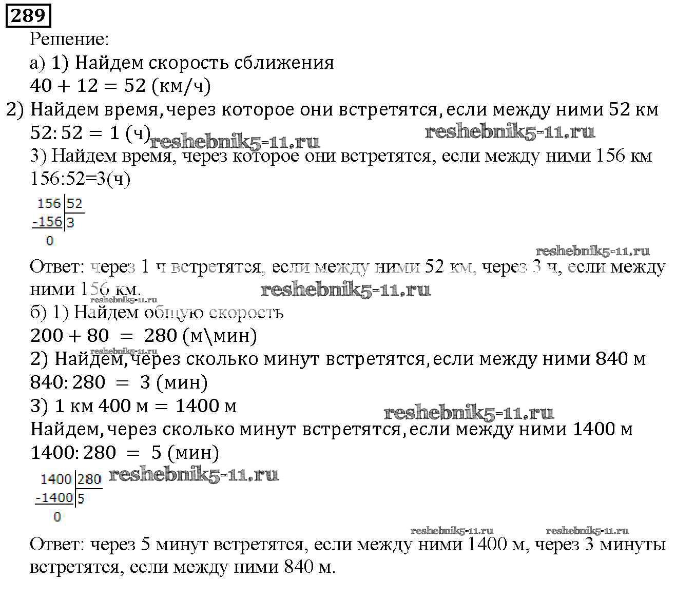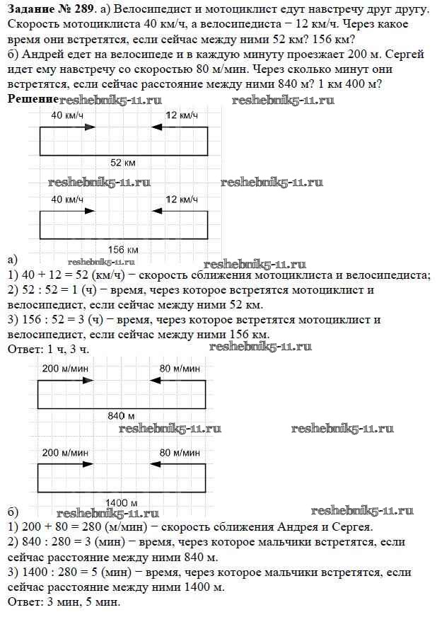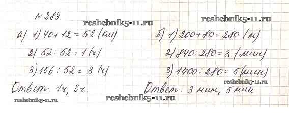 Готовая домашняя работа с ответами по Математике за 5 класс Дорофеев, Шарыгин, Суворова, Бунимович, Кузнецова, Минаева, Рослова Учебник Просвещение 2015 ФГОС - 3.5. Задачи на движение 289