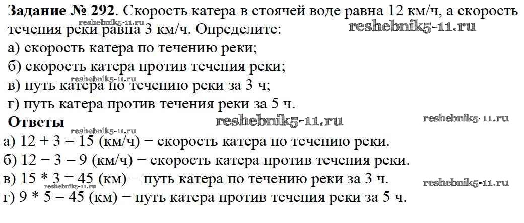 Готовая домашняя работа с ответами по Математике за 5 класс Дорофеев, Шарыгин, Суворова, Бунимович, Кузнецова, Минаева, Рослова Учебник Просвещение 2015 ФГОС - 3.5. Задачи на движение 292