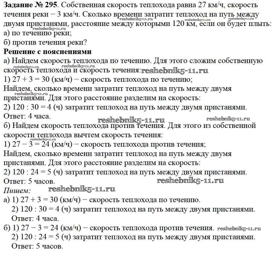 Готовая домашняя работа с ответами по Математике за 5 класс Дорофеев, Шарыгин, Суворова, Бунимович, Кузнецова, Минаева, Рослова Учебник Просвещение 2015 ФГОС - 3.5. Задачи на движение 295