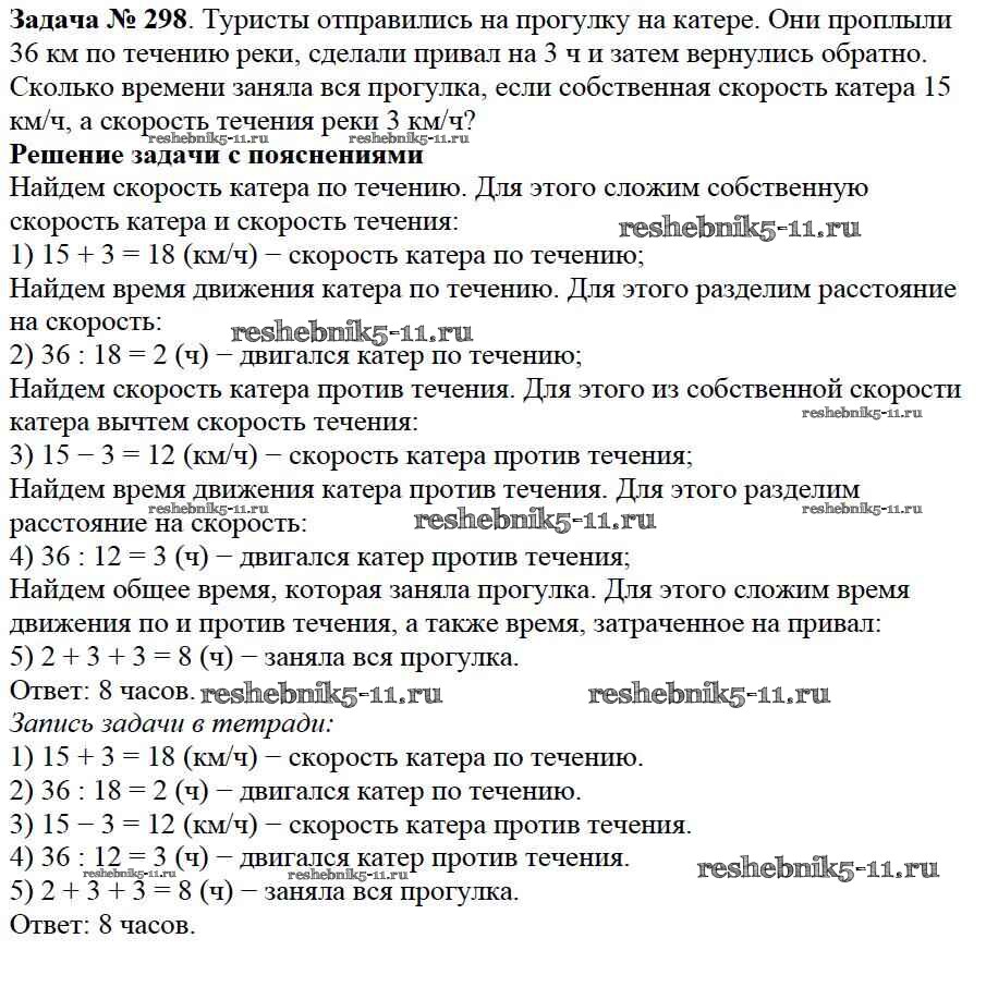 Готовая домашняя работа с ответами по Математике за 5 класс Дорофеев, Шарыгин, Суворова, Бунимович, Кузнецова, Минаева, Рослова Учебник Просвещение 2015 ФГОС - 3.5. Задачи на движение 298