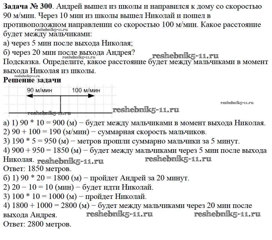 Готовая домашняя работа с ответами по Математике за 5 класс Дорофеев, Шарыгин, Суворова, Бунимович, Кузнецова, Минаева, Рослова Учебник Просвещение 2015 ФГОС - 3.5. Задачи на движение 300