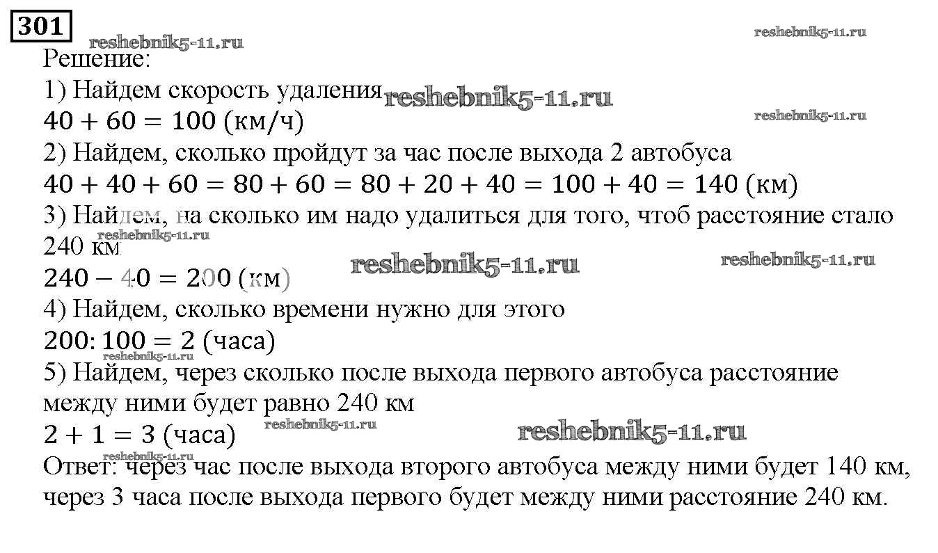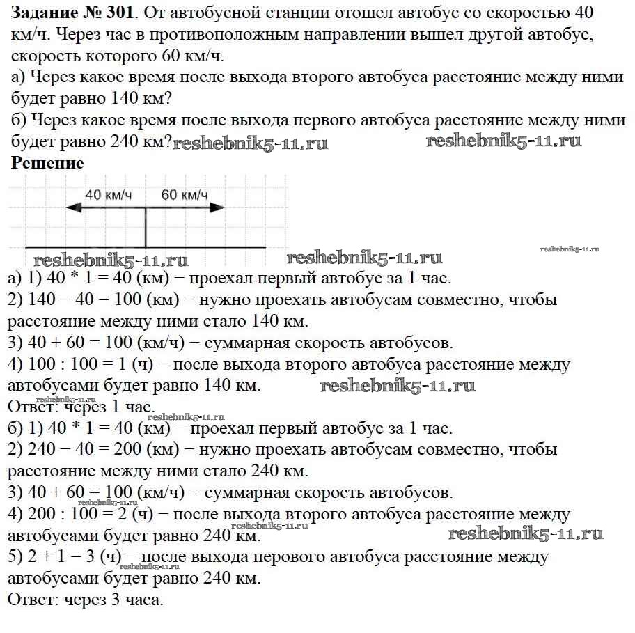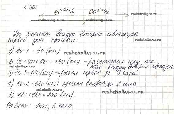 Готовая домашняя работа с ответами по Математике за 5 класс Дорофеев, Шарыгин, Суворова, Бунимович, Кузнецова, Минаева, Рослова Учебник Просвещение 2015 ФГОС - 3.5. Задачи на движение 301