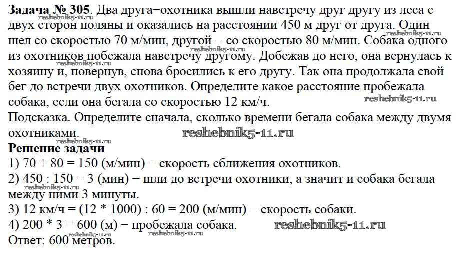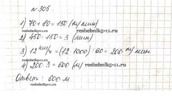Готовая домашняя работа с ответами по Математике за 5 класс Дорофеев, Шарыгин, Суворова, Бунимович, Кузнецова, Минаева, Рослова Учебник Просвещение 2015 ФГОС - 3.5. Задачи на движение 305