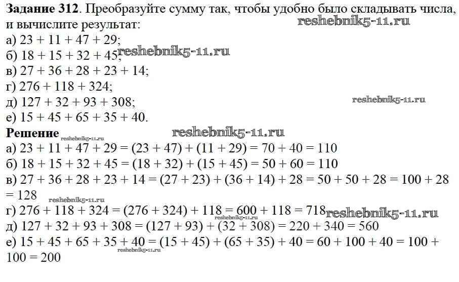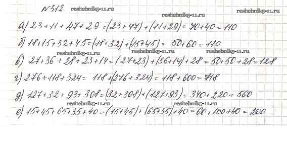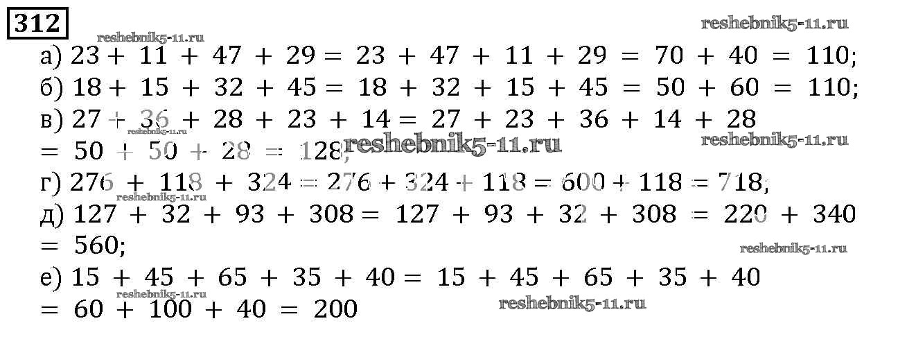 Готовая домашняя работа с ответами по Математике за 5 класс Дорофеев, Шарыгин, Суворова, Бунимович, Кузнецова, Минаева, Рослова Учебник Просвещение 2015 ФГОС - 4.1. Свойства сложения и умножения 312