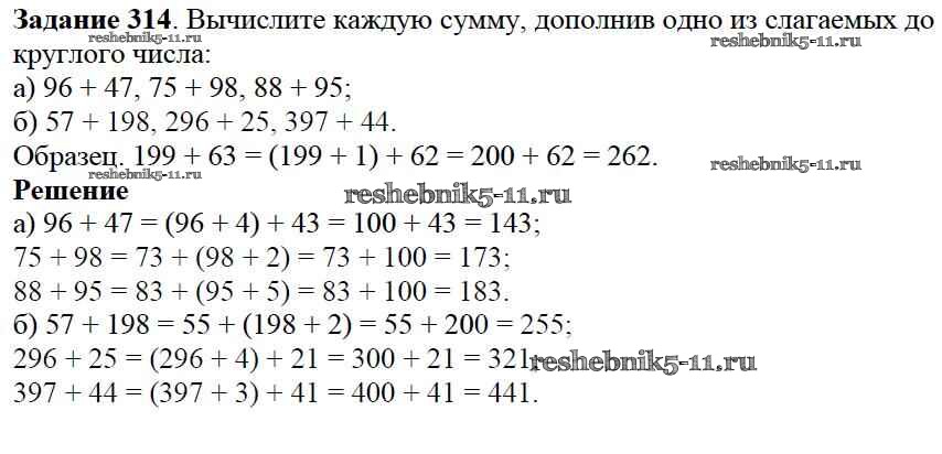 Готовая домашняя работа с ответами по Математике за 5 класс Дорофеев, Шарыгин, Суворова, Бунимович, Кузнецова, Минаева, Рослова Учебник Просвещение 2015 ФГОС - 4.1. Свойства сложения и умножения 314