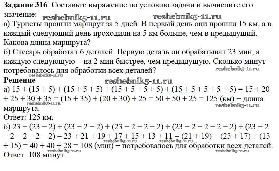 Готовая домашняя работа с ответами по Математике за 5 класс Дорофеев, Шарыгин, Суворова, Бунимович, Кузнецова, Минаева, Рослова Учебник Просвещение 2015 ФГОС - 4.1. Свойства сложения и умножения 316