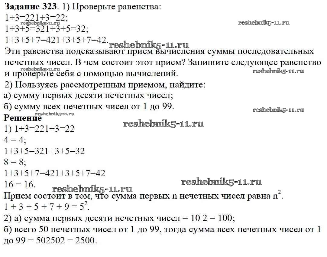 Готовая домашняя работа с ответами по Математике за 5 класс Дорофеев, Шарыгин, Суворова, Бунимович, Кузнецова, Минаева, Рослова Учебник Просвещение 2015 ФГОС - 4.1. Свойства сложения и умножения 323