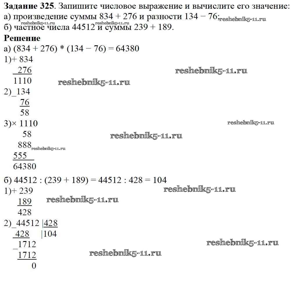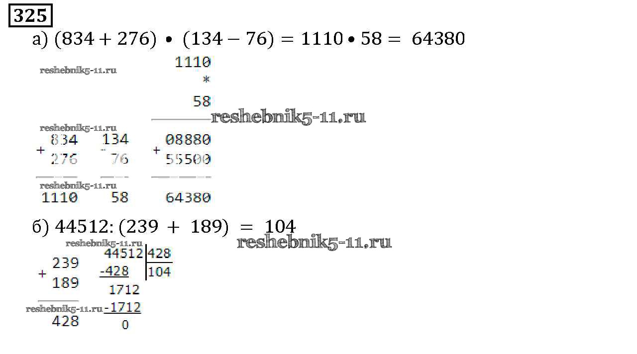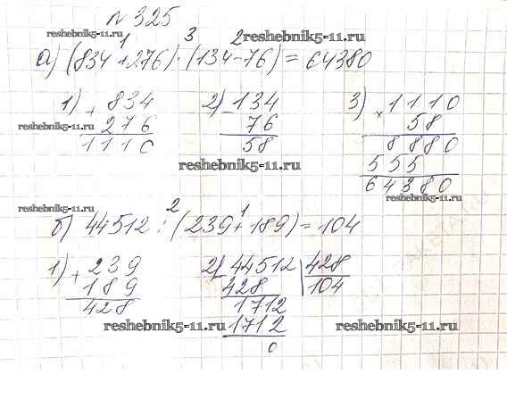 Готовая домашняя работа с ответами по Математике за 5 класс Дорофеев, Шарыгин, Суворова, Бунимович, Кузнецова, Минаева, Рослова Учебник Просвещение 2015 ФГОС - 4.1. Свойства сложения и умножения 325