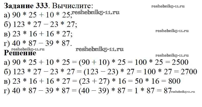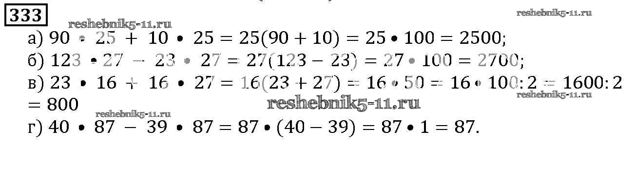 Готовая домашняя работа с ответами по Математике за 5 класс Дорофеев, Шарыгин, Суворова, Бунимович, Кузнецова, Минаева, Рослова Учебник Просвещение 2015 ФГОС - 4.2. Распределительное свойство 333