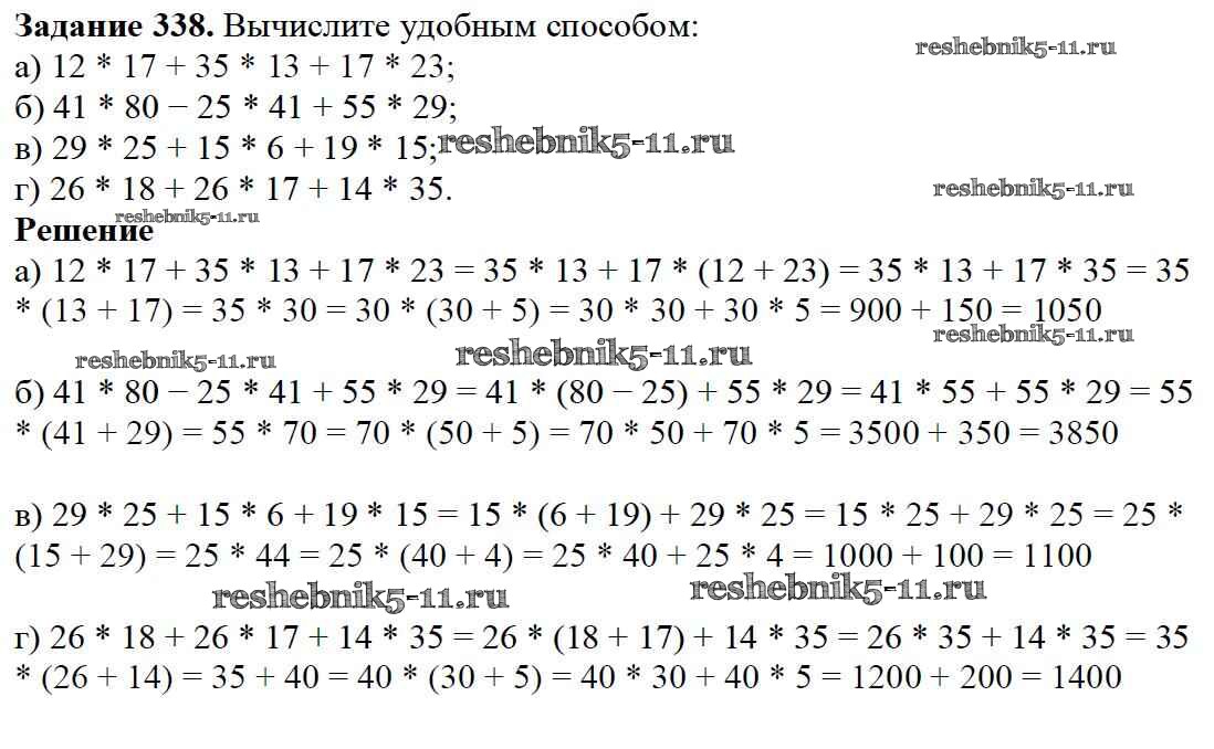 Готовая домашняя работа с ответами по Математике за 5 класс Дорофеев, Шарыгин, Суворова, Бунимович, Кузнецова, Минаева, Рослова Учебник Просвещение 2015 ФГОС - 4.2. Распределительное свойство 338
