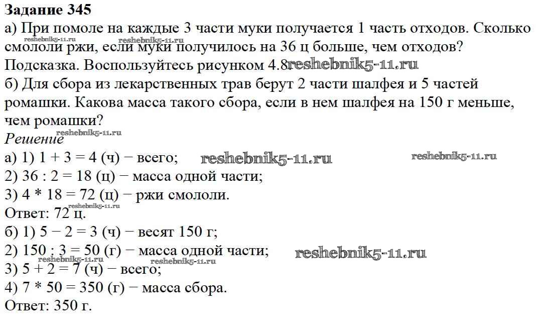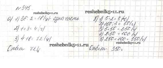 Готовая домашняя работа с ответами по Математике за 5 класс Дорофеев, Шарыгин, Суворова, Бунимович, Кузнецова, Минаева, Рослова Учебник Просвещение 2015 ФГОС - 4.3. Задачи на части 345