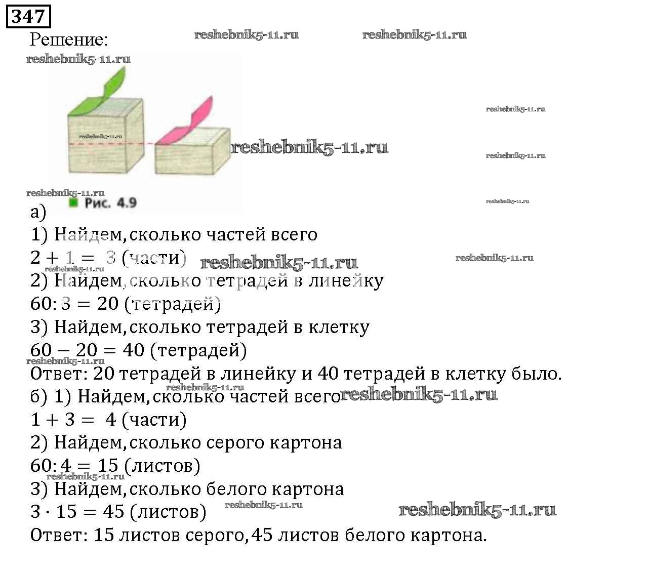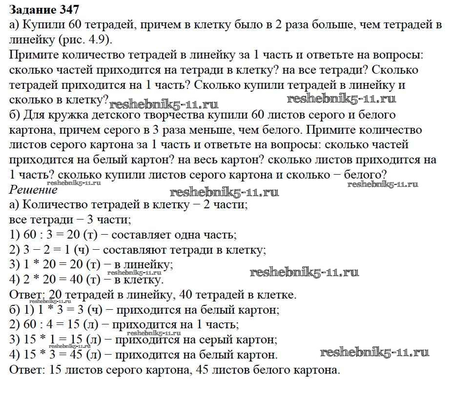 Готовая домашняя работа с ответами по Математике за 5 класс Дорофеев, Шарыгин, Суворова, Бунимович, Кузнецова, Минаева, Рослова Учебник Просвещение 2015 ФГОС - 4.3. Задачи на части 347