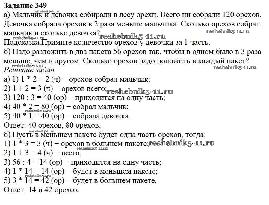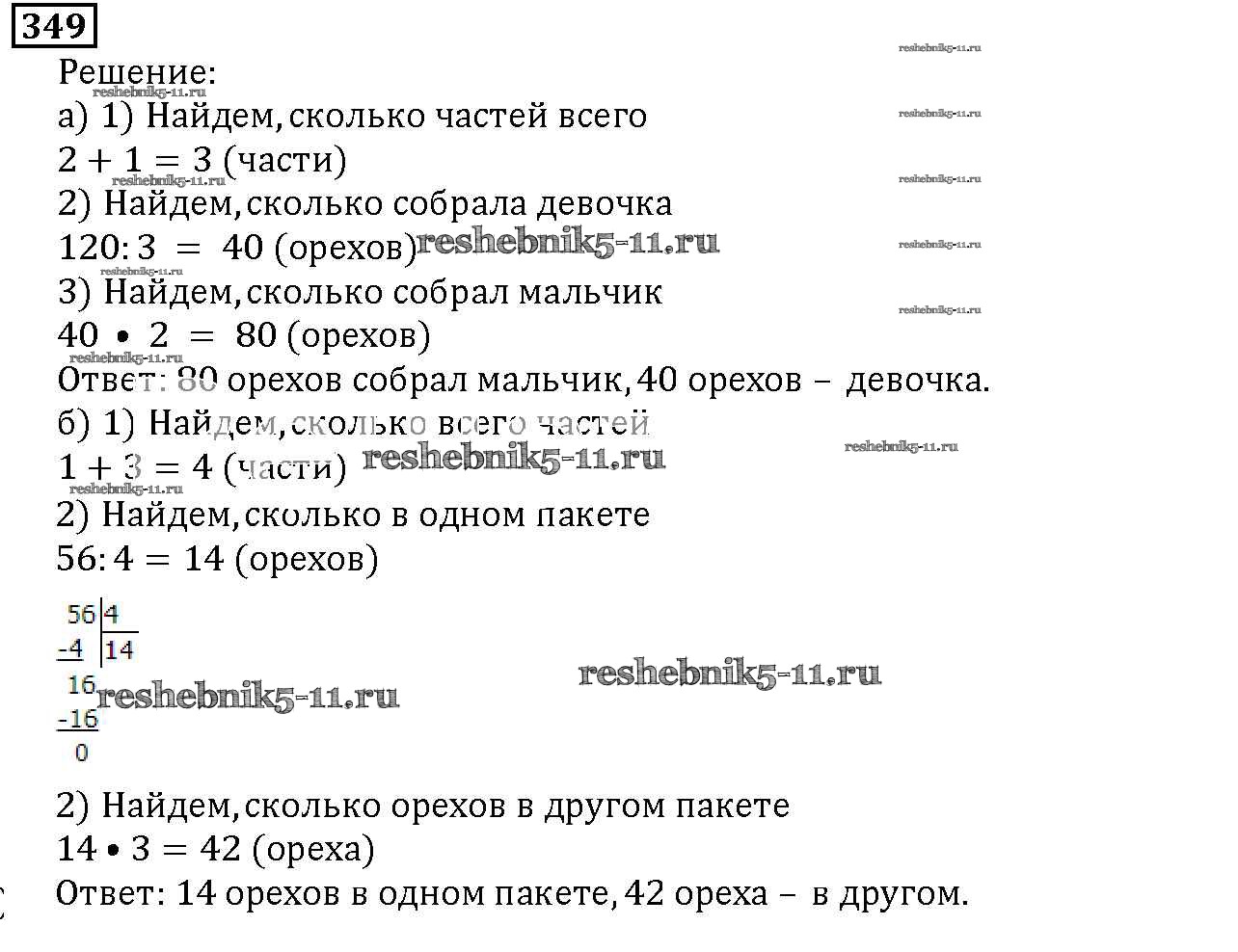 Готовая домашняя работа с ответами по Математике за 5 класс Дорофеев, Шарыгин, Суворова, Бунимович, Кузнецова, Минаева, Рослова Учебник Просвещение 2015 ФГОС - 4.3. Задачи на части 349