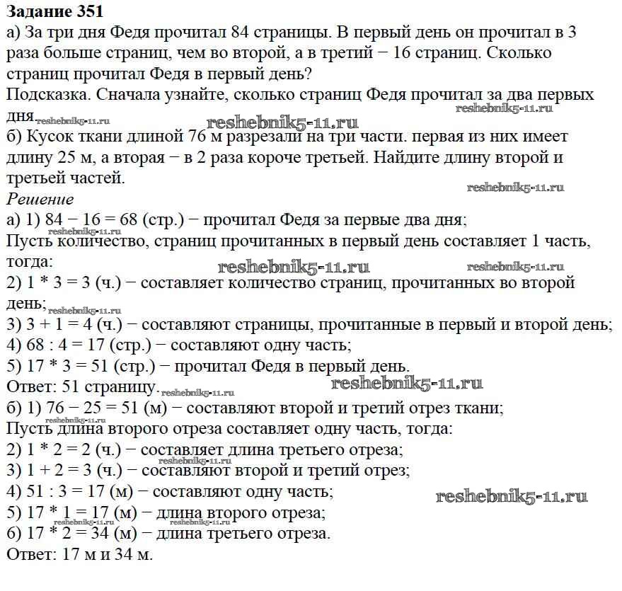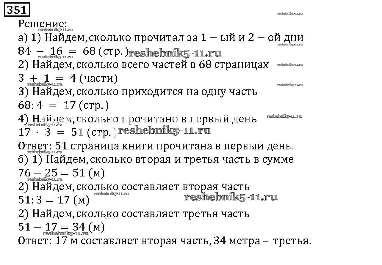Готовая домашняя работа с ответами по Математике за 5 класс Дорофеев, Шарыгин, Суворова, Бунимович, Кузнецова, Минаева, Рослова Учебник Просвещение 2015 ФГОС - 4.3. Задачи на части 351