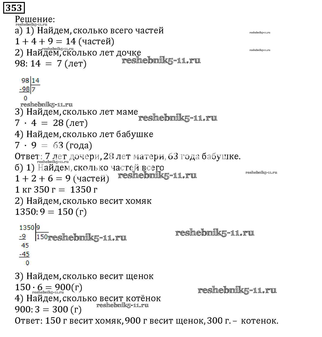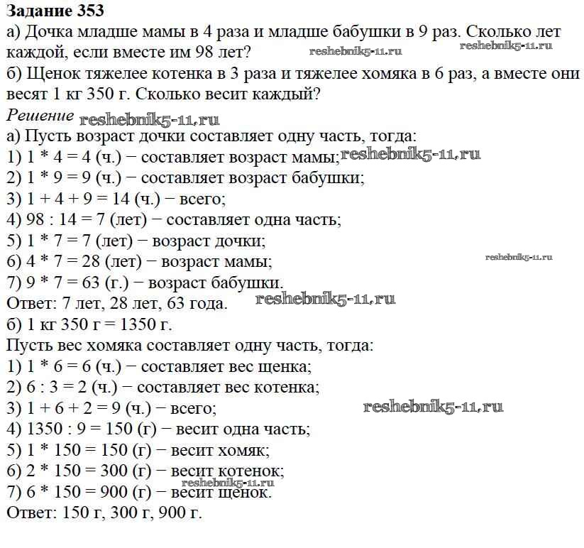 Готовая домашняя работа с ответами по Математике за 5 класс Дорофеев, Шарыгин, Суворова, Бунимович, Кузнецова, Минаева, Рослова Учебник Просвещение 2015 ФГОС - 4.3. Задачи на части 353
