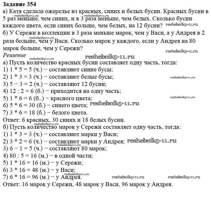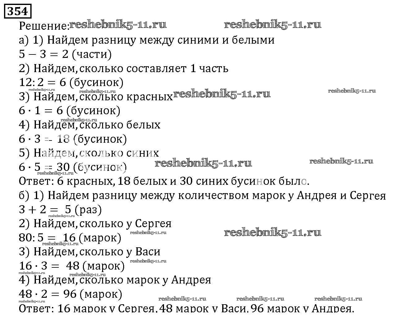 Готовая домашняя работа с ответами по Математике за 5 класс Дорофеев, Шарыгин, Суворова, Бунимович, Кузнецова, Минаева, Рослова Учебник Просвещение 2015 ФГОС - 4.3. Задачи на части 354
