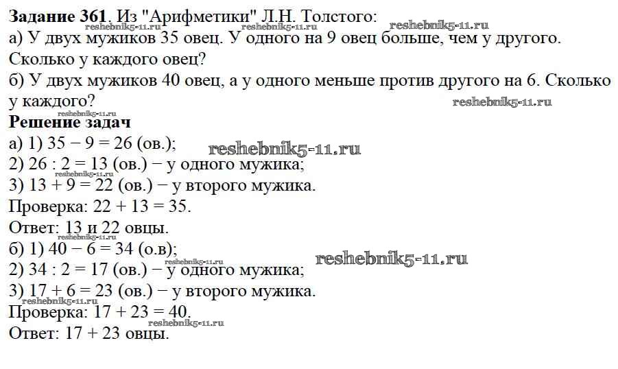 Готовая домашняя работа с ответами по Математике за 5 класс Дорофеев, Шарыгин, Суворова, Бунимович, Кузнецова, Минаева, Рослова Учебник Просвещение 2015 ФГОС - 4.4. Задачи на уравнивание 361