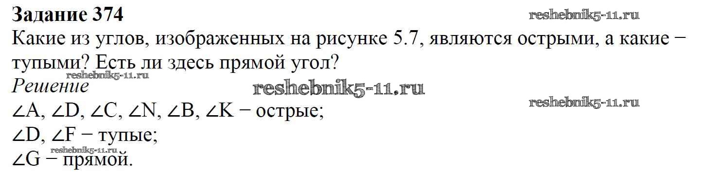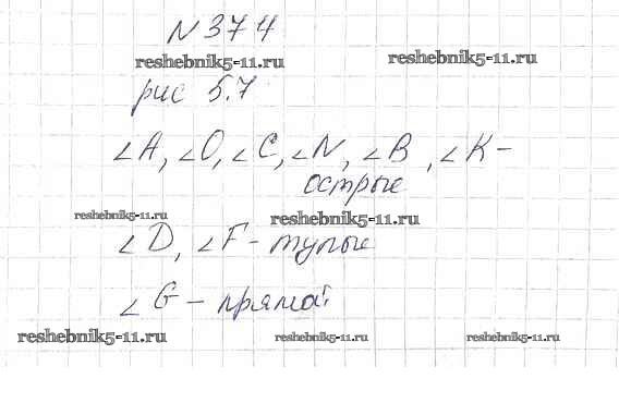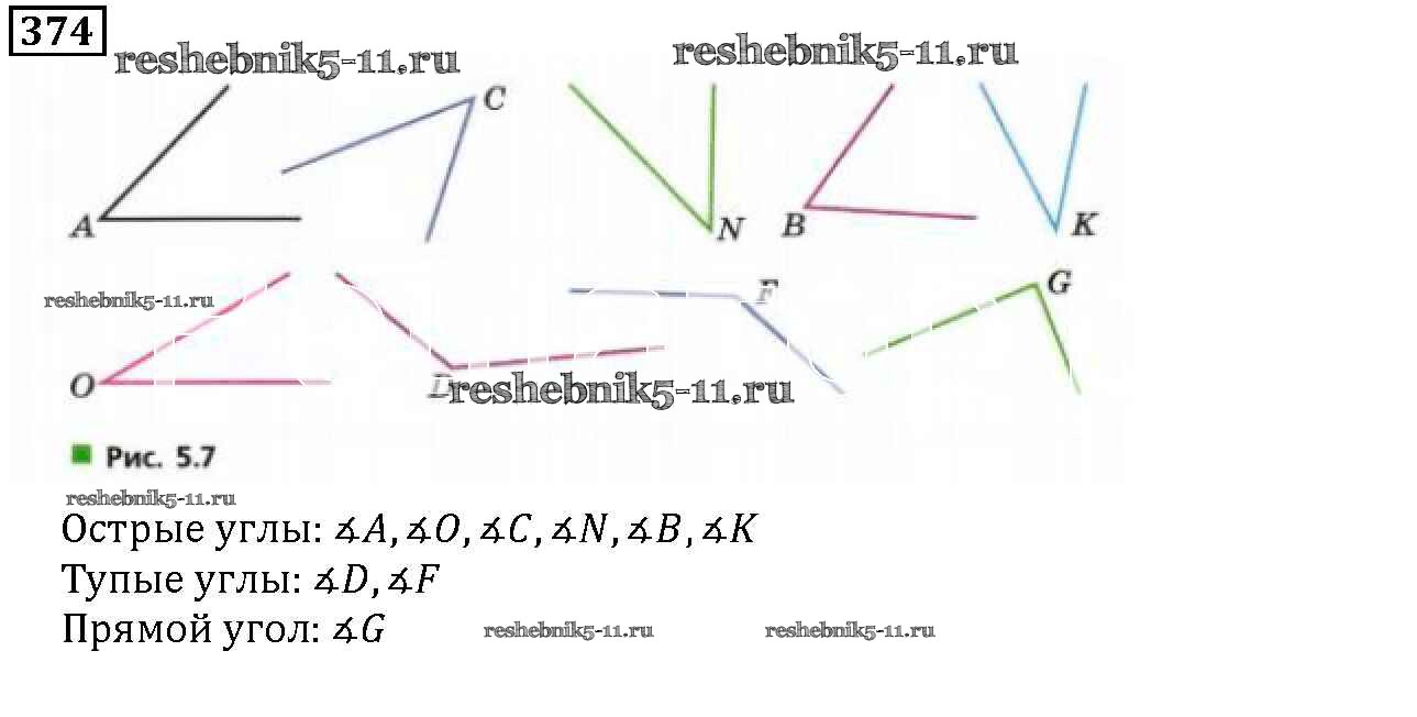 Готовая домашняя работа с ответами по Математике за 5 класс Дорофеев, Шарыгин, Суворова, Бунимович, Кузнецова, Минаева, Рослова Учебник Просвещение 2015 ФГОС - 5.1. Как обозначают и сравнивают углы 374