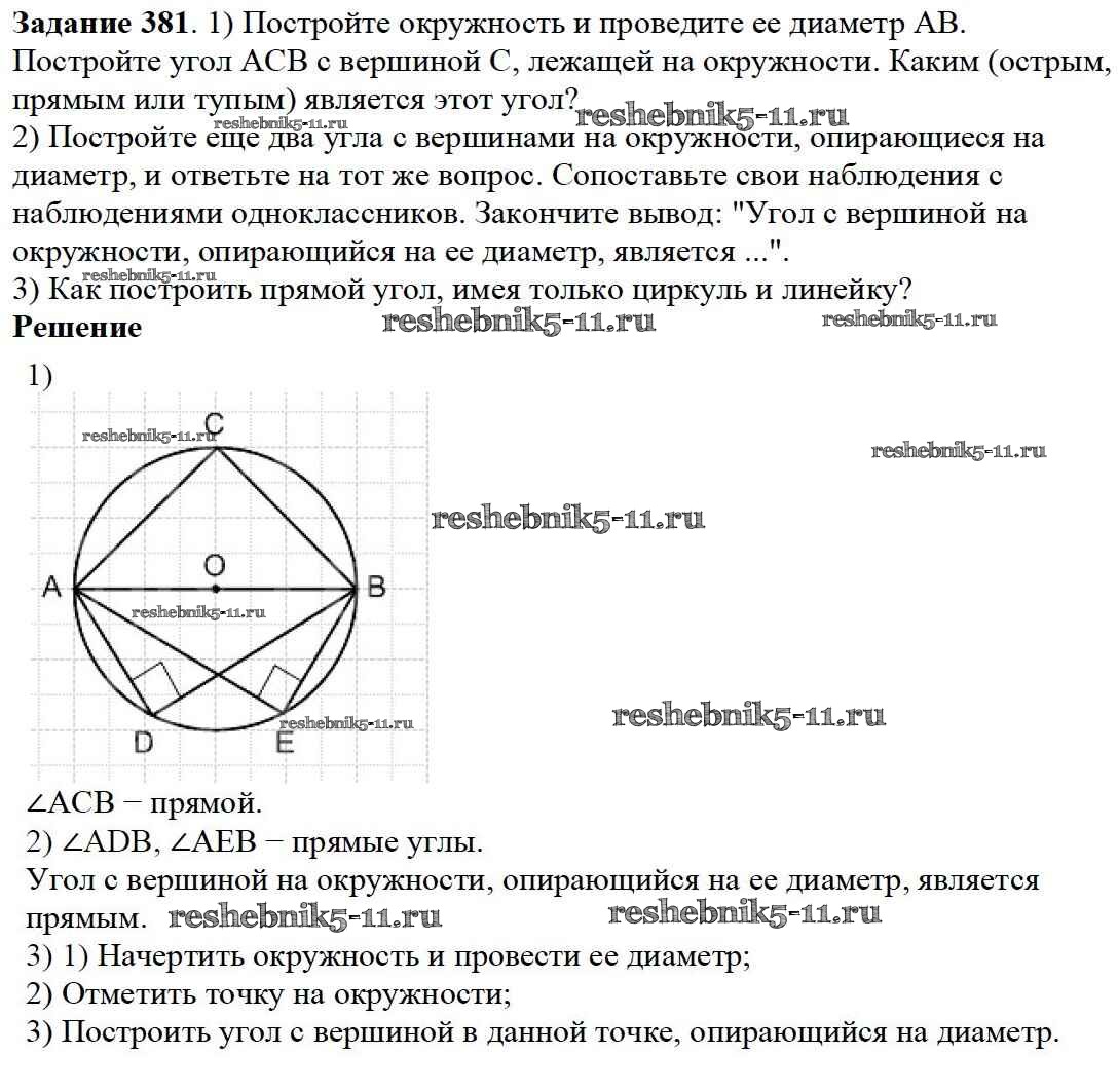 Готовая домашняя работа с ответами по Математике за 5 класс Дорофеев, Шарыгин, Суворова, Бунимович, Кузнецова, Минаева, Рослова Учебник Просвещение 2015 ФГОС - 5.1. Как обозначают и сравнивают углы 381