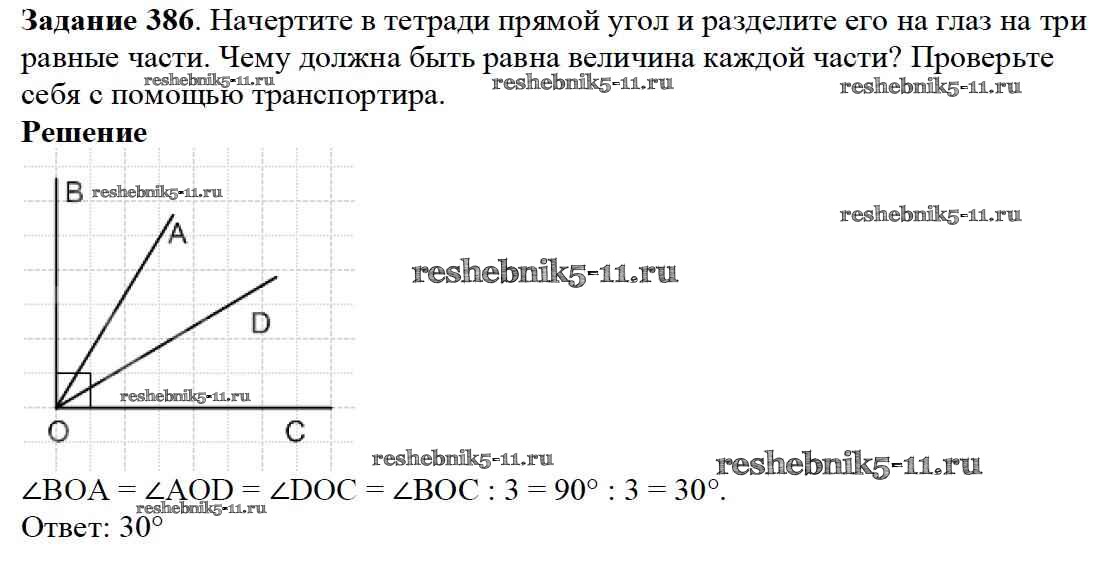Готовая домашняя работа с ответами по Математике за 5 класс Дорофеев, Шарыгин, Суворова, Бунимович, Кузнецова, Минаева, Рослова Учебник Просвещение 2015 ФГОС - 5.2. Измерение углов 386