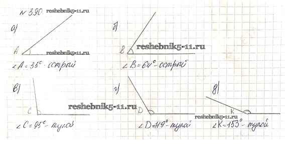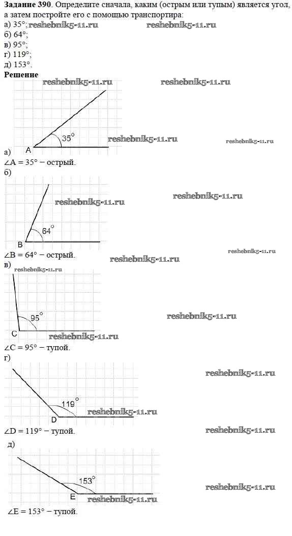 Готовая домашняя работа с ответами по Математике за 5 класс Дорофеев, Шарыгин, Суворова, Бунимович, Кузнецова, Минаева, Рослова Учебник Просвещение 2015 ФГОС - 5.2. Измерение углов 390