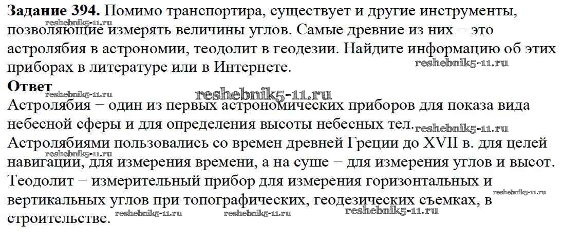Готовая домашняя работа с ответами по Математике за 5 класс Дорофеев, Шарыгин, Суворова, Бунимович, Кузнецова, Минаева, Рослова Учебник Просвещение 2015 ФГОС - 5.2. Измерение углов 394