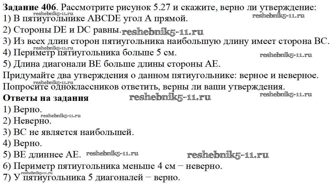 Готовая домашняя работа с ответами по Математике за 5 класс Дорофеев, Шарыгин, Суворова, Бунимович, Кузнецова, Минаева, Рослова Учебник Просвещение 2015 ФГОС - 5.3. Ломаные и многоугольники 406