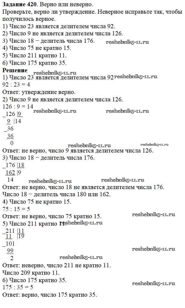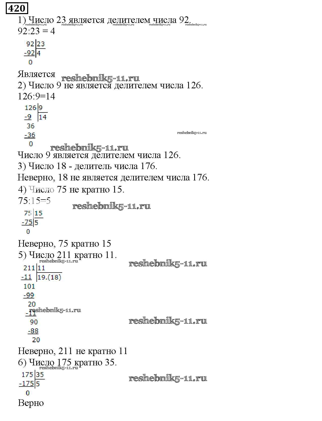 Готовая домашняя работа с ответами по Математике за 5 класс Дорофеев, Шарыгин, Суворова, Бунимович, Кузнецова, Минаева, Рослова Учебник Просвещение 2015 ФГОС - 6.1. Делители и кратные 420