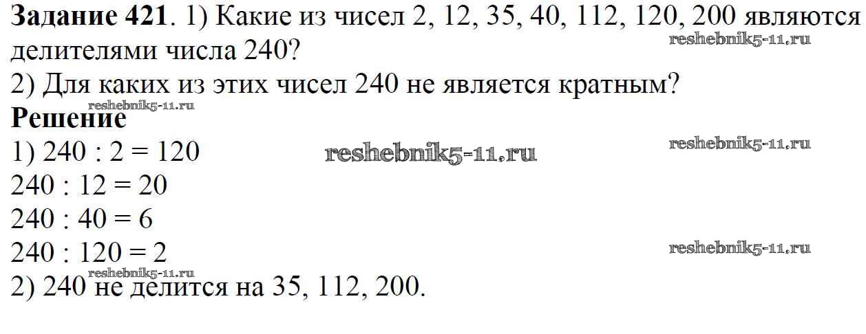 Готовая домашняя работа с ответами по Математике за 5 класс Дорофеев, Шарыгин, Суворова, Бунимович, Кузнецова, Минаева, Рослова Учебник Просвещение 2015 ФГОС - 6.1. Делители и кратные 421