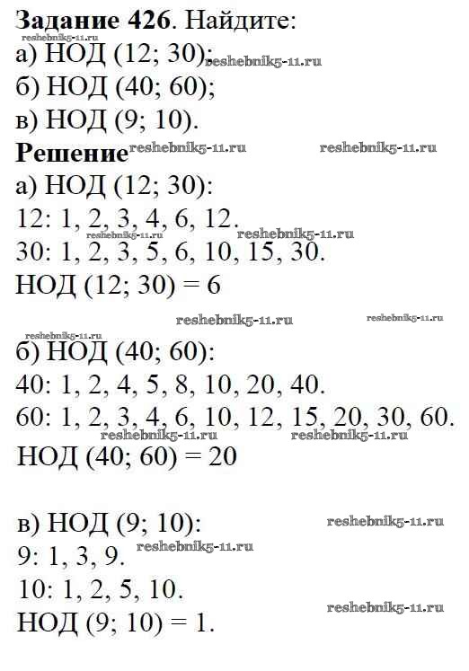 Готовая домашняя работа с ответами по Математике за 5 класс Дорофеев, Шарыгин, Суворова, Бунимович, Кузнецова, Минаева, Рослова Учебник Просвещение 2015 ФГОС - 6.1. Делители и кратные 426
