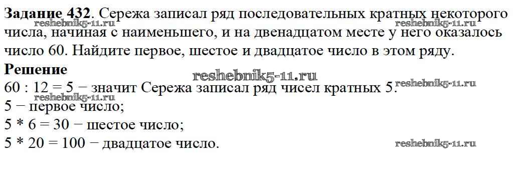Готовая домашняя работа с ответами по Математике за 5 класс Дорофеев, Шарыгин, Суворова, Бунимович, Кузнецова, Минаева, Рослова Учебник Просвещение 2015 ФГОС - 6.1. Делители и кратные 432