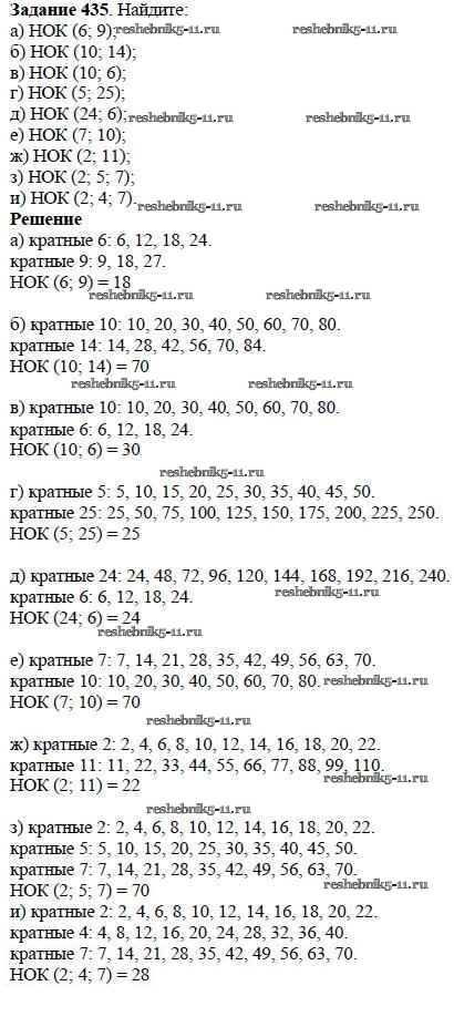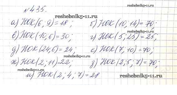 Готовая домашняя работа с ответами по Математике за 5 класс Дорофеев, Шарыгин, Суворова, Бунимович, Кузнецова, Минаева, Рослова Учебник Просвещение 2015 ФГОС - 6.1. Делители и кратные 435