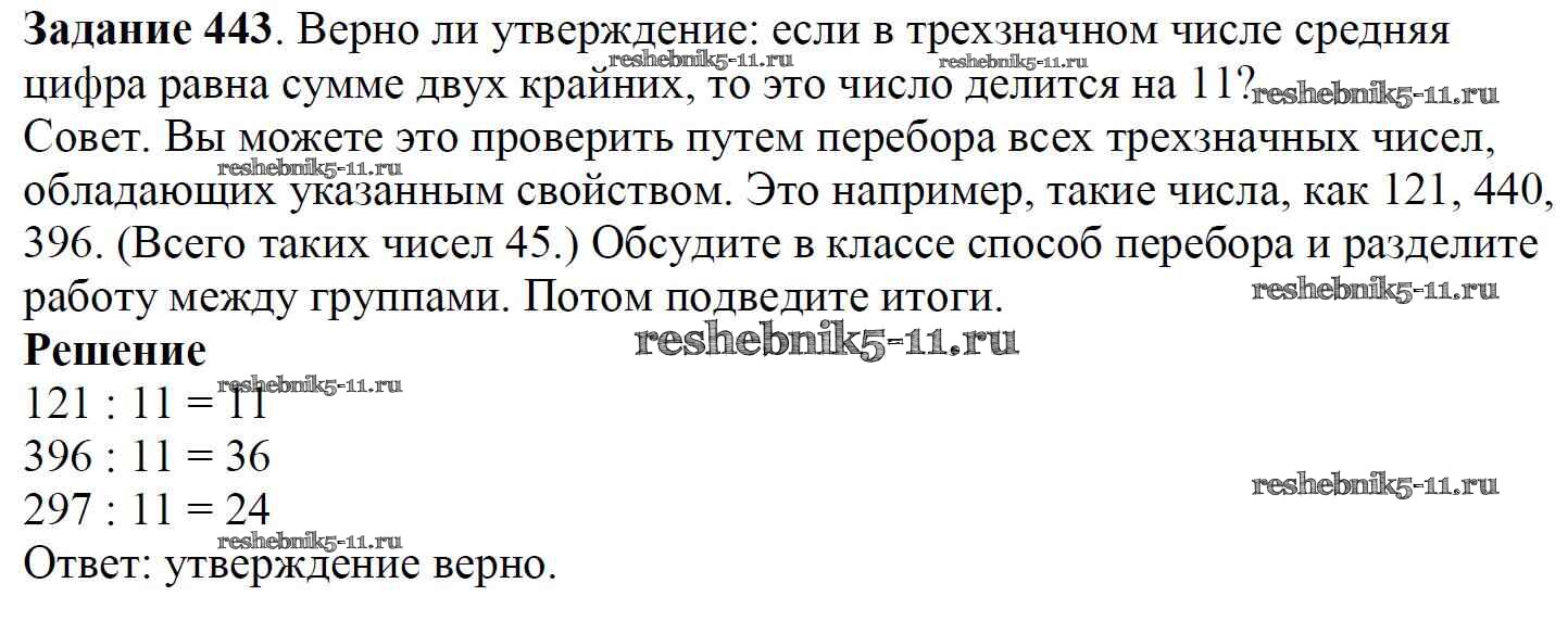 Готовая домашняя работа с ответами по Математике за 5 класс Дорофеев, Шарыгин, Суворова, Бунимович, Кузнецова, Минаева, Рослова Учебник Просвещение 2015 ФГОС - 6.1. Делители и кратные 443