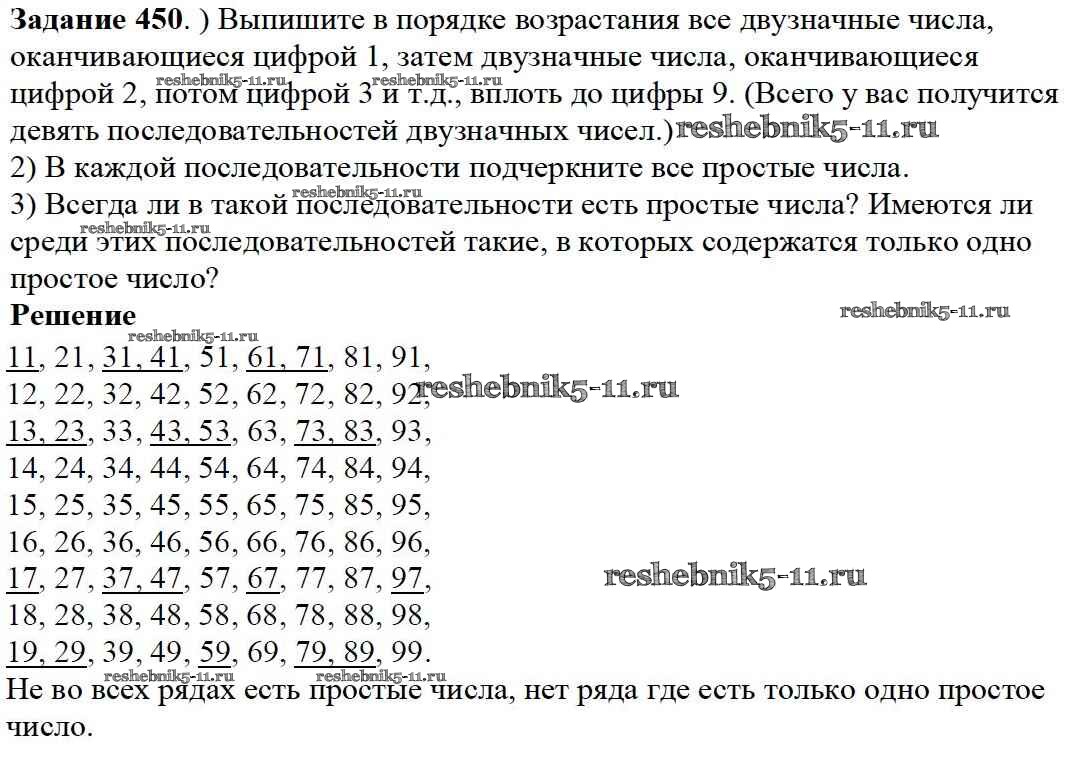 Готовая домашняя работа с ответами по Математике за 5 класс Дорофеев, Шарыгин, Суворова, Бунимович, Кузнецова, Минаева, Рослова Учебник Просвещение 2015 ФГОС - 6.2. Простые и составные 450