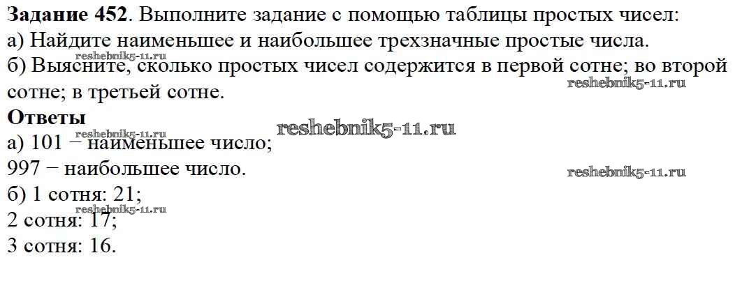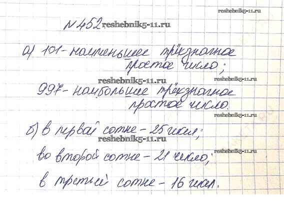 Готовая домашняя работа с ответами по Математике за 5 класс Дорофеев, Шарыгин, Суворова, Бунимович, Кузнецова, Минаева, Рослова Учебник Просвещение 2015 ФГОС - 6.2. Простые и составные 452