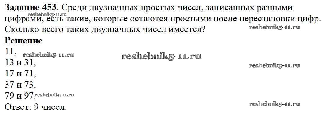 Готовая домашняя работа с ответами по Математике за 5 класс Дорофеев, Шарыгин, Суворова, Бунимович, Кузнецова, Минаева, Рослова Учебник Просвещение 2015 ФГОС - 6.2. Простые и составные 453