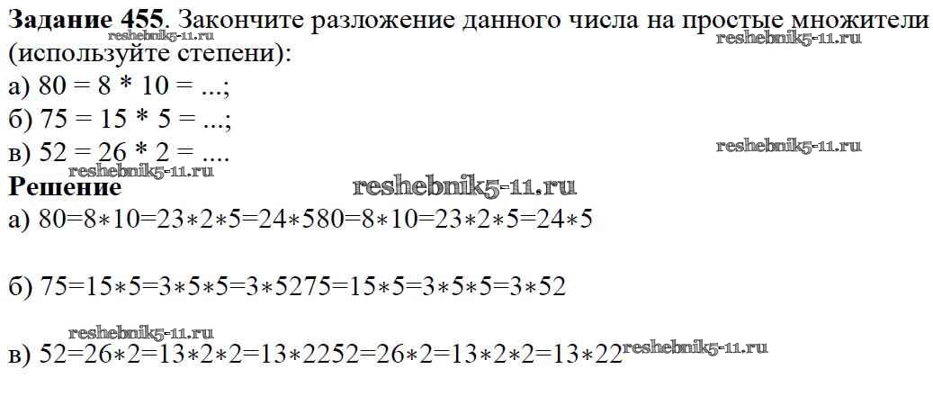 Готовая домашняя работа с ответами по Математике за 5 класс Дорофеев, Шарыгин, Суворова, Бунимович, Кузнецова, Минаева, Рослова Учебник Просвещение 2015 ФГОС - 6.2. Простые и составные 455