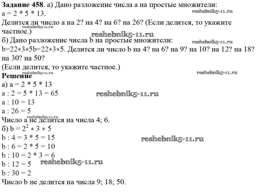 Готовая домашняя работа с ответами по Математике за 5 класс Дорофеев, Шарыгин, Суворова, Бунимович, Кузнецова, Минаева, Рослова Учебник Просвещение 2015 ФГОС - 6.2. Простые и составные 458