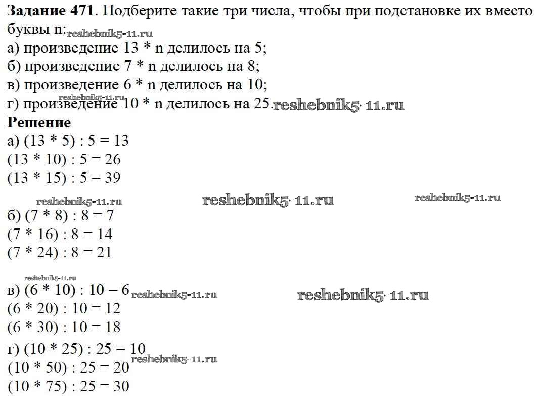 Готовая домашняя работа с ответами по Математике за 5 класс Дорофеев, Шарыгин, Суворова, Бунимович, Кузнецова, Минаева, Рослова Учебник Просвещение 2015 ФГОС - 6.3. Свойства делимости 471