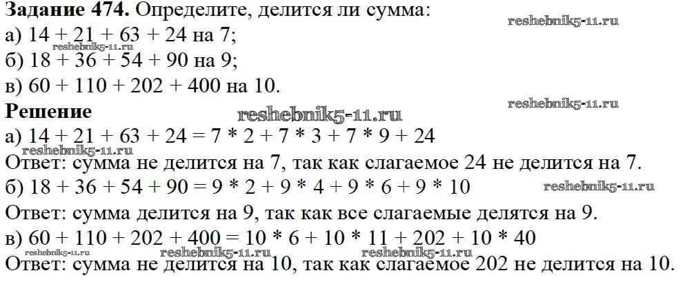 Готовая домашняя работа с ответами по Математике за 5 класс Дорофеев, Шарыгин, Суворова, Бунимович, Кузнецова, Минаева, Рослова Учебник Просвещение 2015 ФГОС - 6.3. Свойства делимости 474