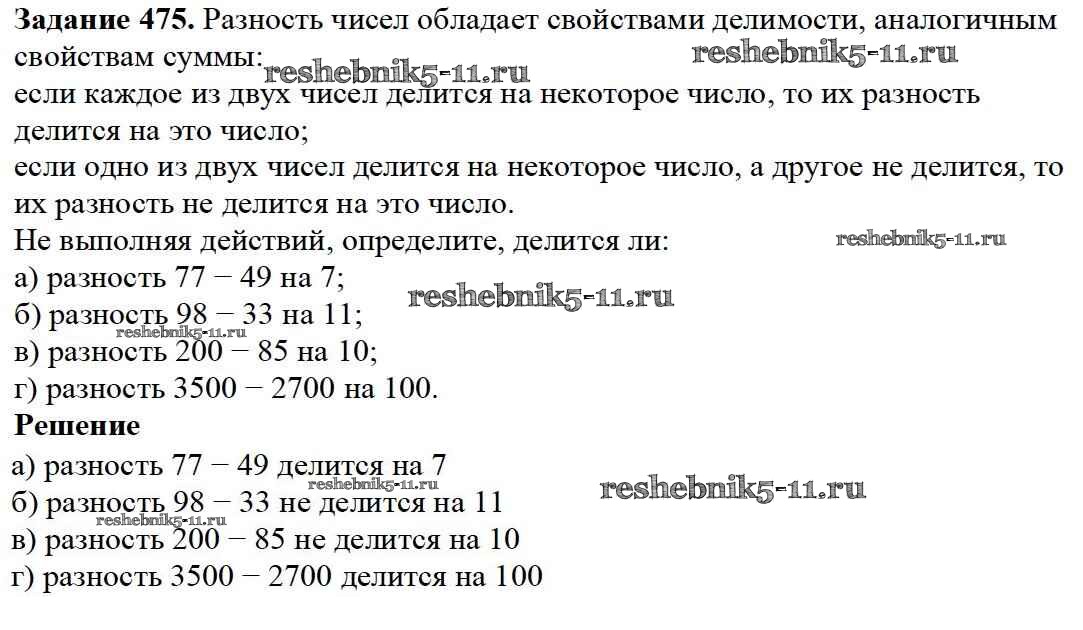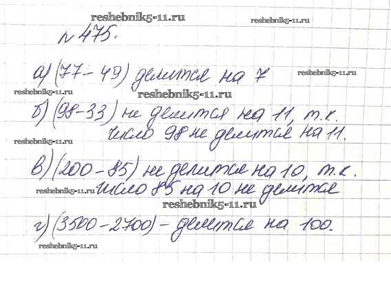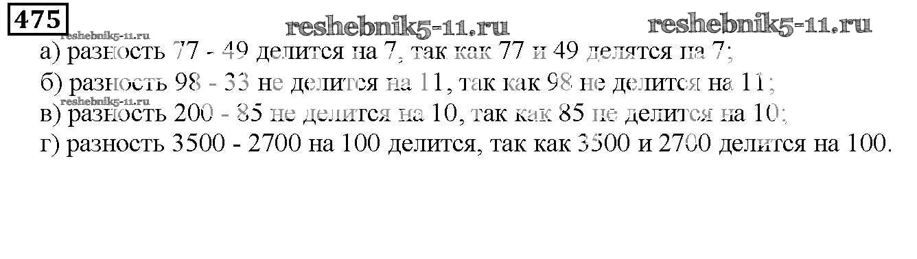 Готовая домашняя работа с ответами по Математике за 5 класс Дорофеев, Шарыгин, Суворова, Бунимович, Кузнецова, Минаева, Рослова Учебник Просвещение 2015 ФГОС - 6.3. Свойства делимости 475