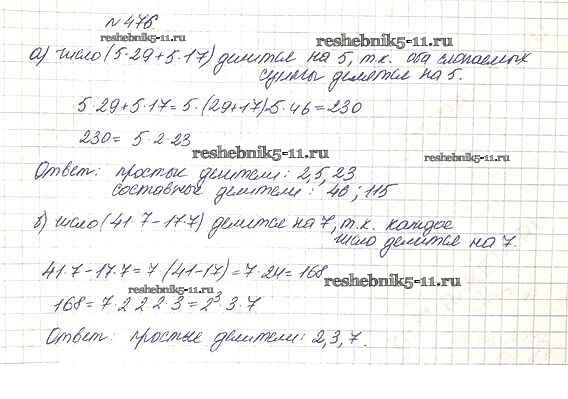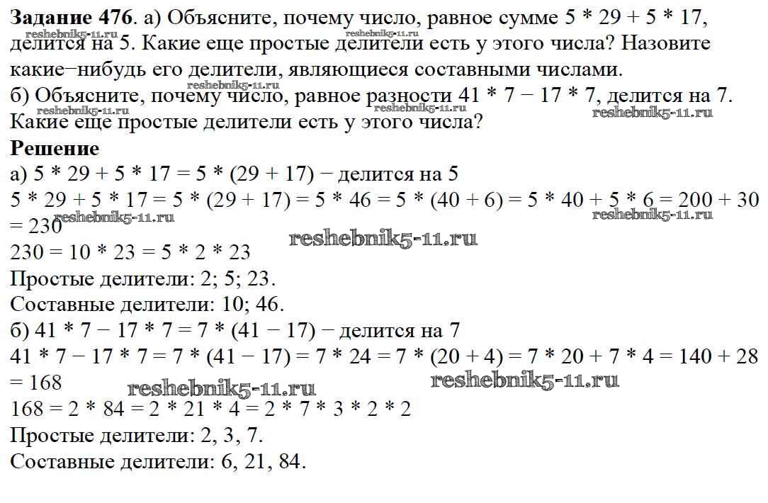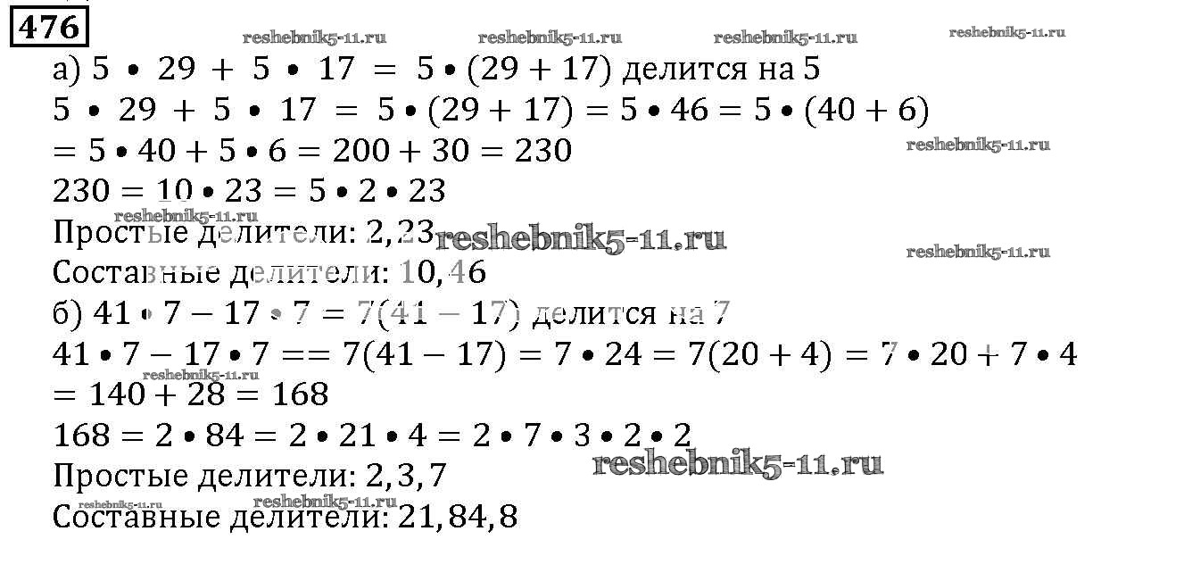 Готовая домашняя работа с ответами по Математике за 5 класс Дорофеев, Шарыгин, Суворова, Бунимович, Кузнецова, Минаева, Рослова Учебник Просвещение 2015 ФГОС - 6.3. Свойства делимости 476