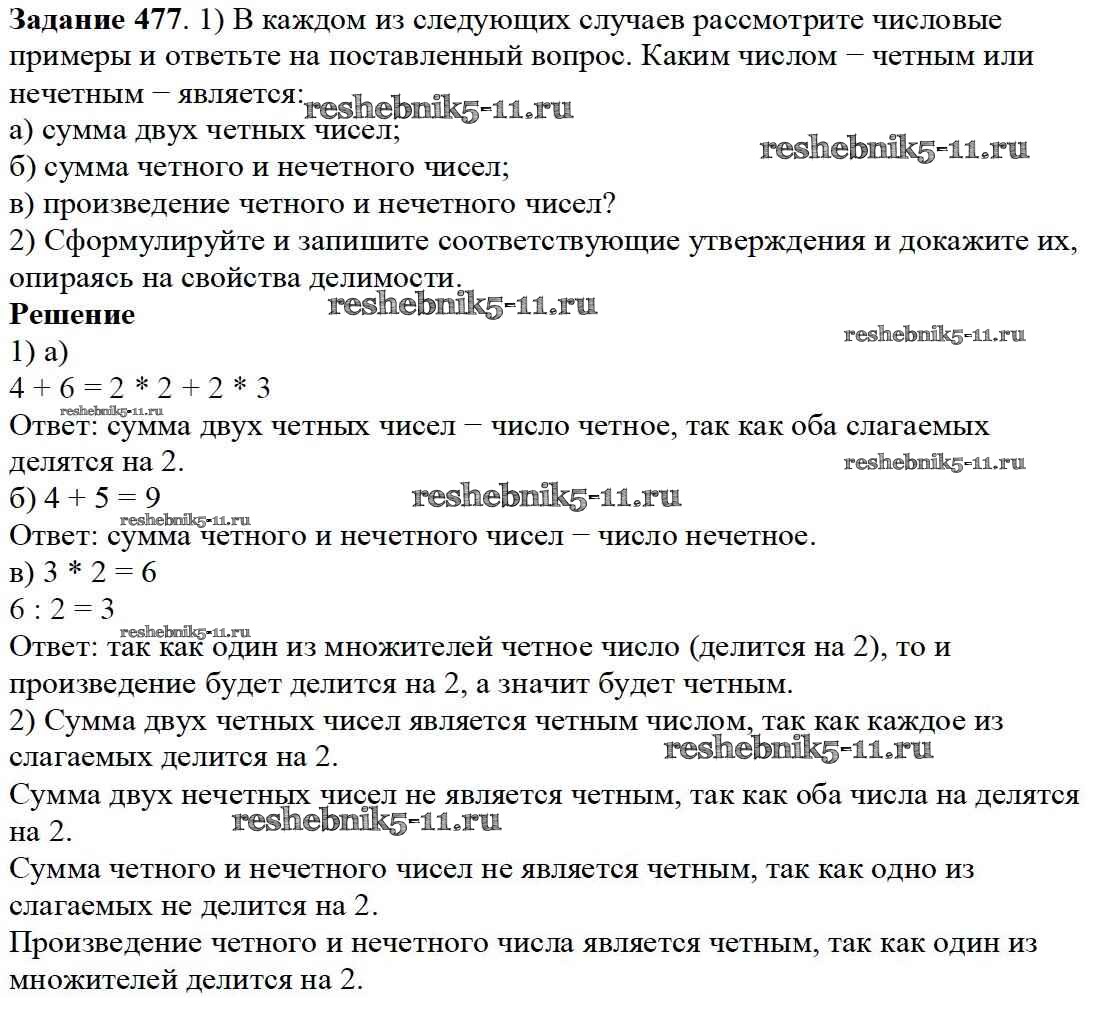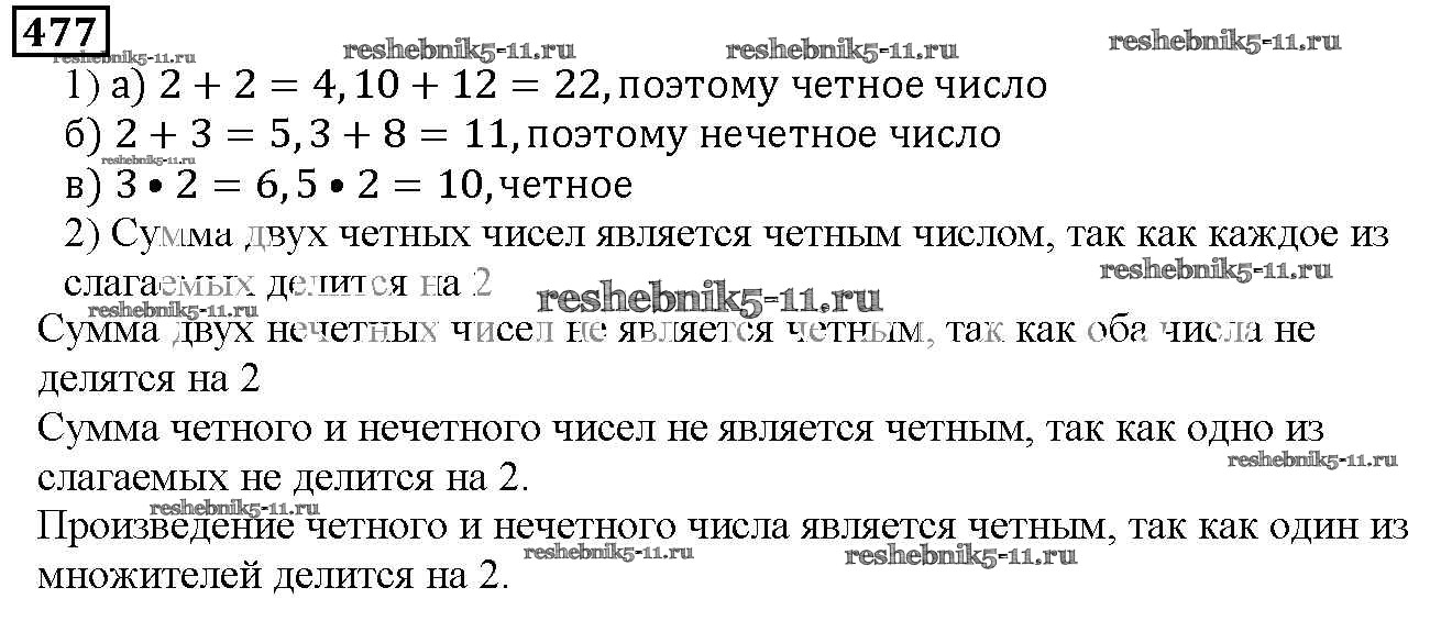 Готовая домашняя работа с ответами по Математике за 5 класс Дорофеев, Шарыгин, Суворова, Бунимович, Кузнецова, Минаева, Рослова Учебник Просвещение 2015 ФГОС - 6.3. Свойства делимости 477