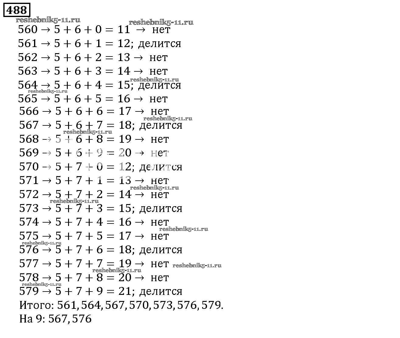Готовая домашняя работа с ответами по Математике за 5 класс Дорофеев, Шарыгин, Суворова, Бунимович, Кузнецова, Минаева, Рослова Учебник Просвещение 2015 ФГОС - 6.4. Признаки делимости 488