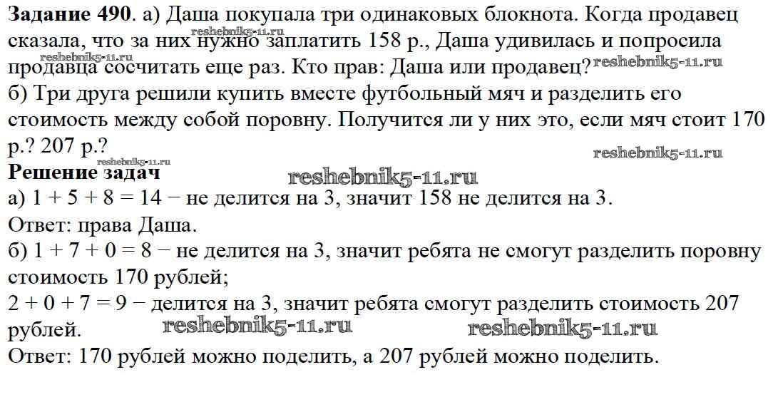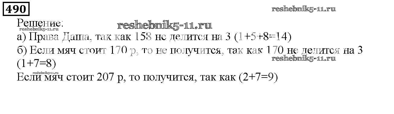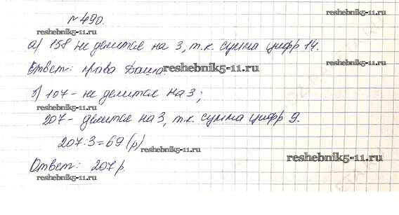 Готовая домашняя работа с ответами по Математике за 5 класс Дорофеев, Шарыгин, Суворова, Бунимович, Кузнецова, Минаева, Рослова Учебник Просвещение 2015 ФГОС - 6.4. Признаки делимости 490